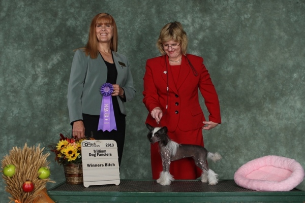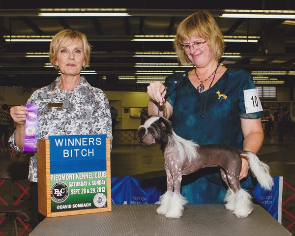 Belews Beau Tied Heart X GCH Belews Sooner Or Later CA Date of Birth: 3/18/2013 Breeder: Michael & DeLisa Parker Owner: Robert Robinson Magic is a hairless Chinese Crested girl. Her temperament is just like her mothers, she loves to show, loves lure coursing and hates to be left out. She is elegant and refined, has very nice movement, level topline and excellent tail set and carriage. Magic earned her Canadian Championship by taking WB at 4 shows in a row at the Ontario Specialties. She is being shown on a limited basis by her new owner Robert Robinson and spends her free time sitting on laps and stealing everyone's socks. Magic's Pedigree | |